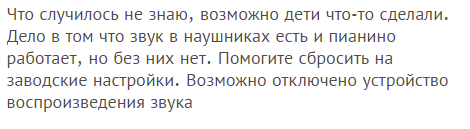 – проблемы с уровнем громкости, динамиками, неадекватностью звуковой реакции;